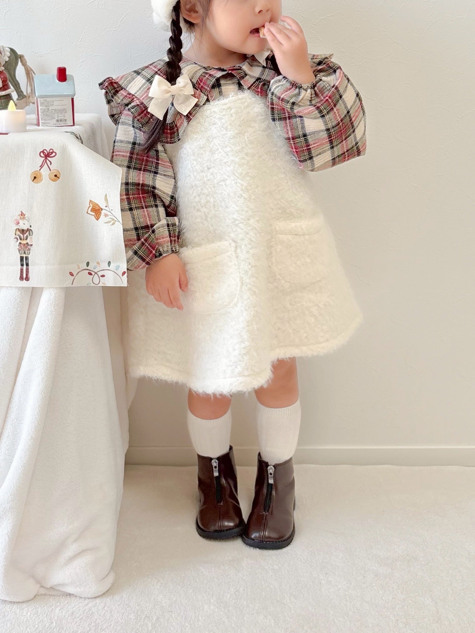 【即納】ohho / turtan check blouse