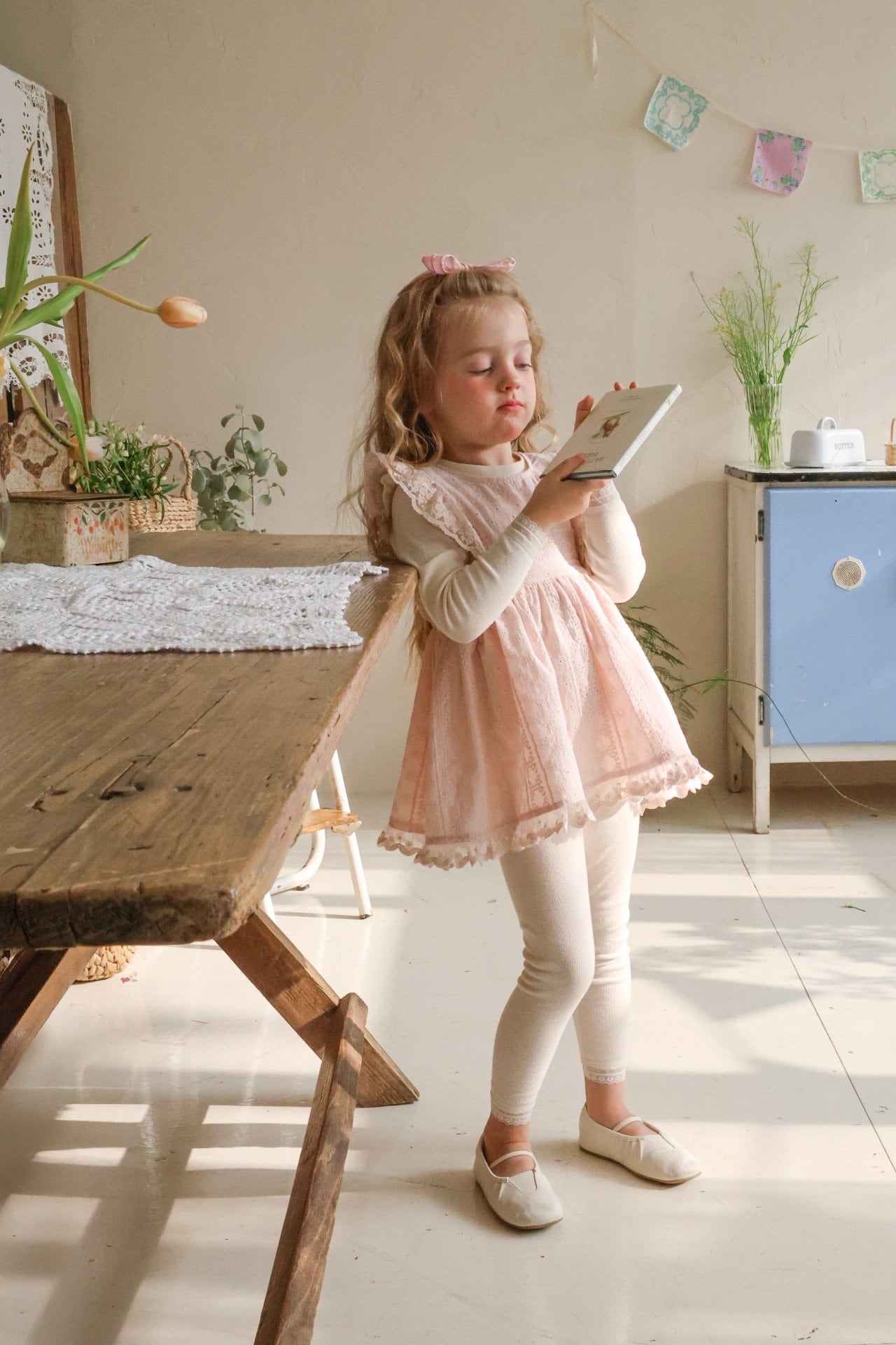 oatmeal / pink / cream / blue